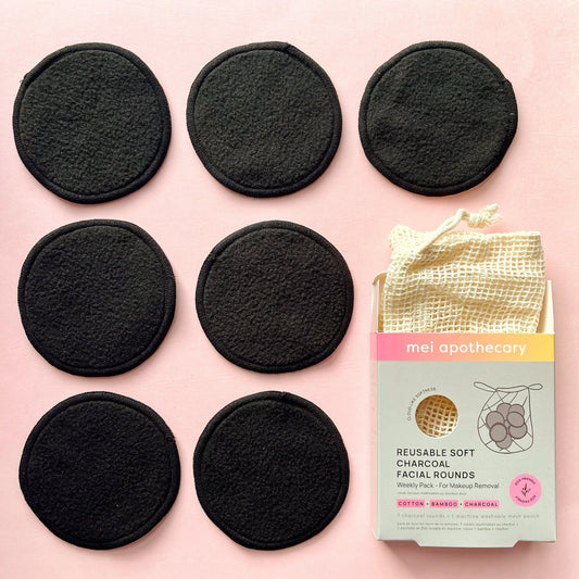 Mei Apothecary Reusable Charcoal Soft Facial Rounds for Makeup Removal